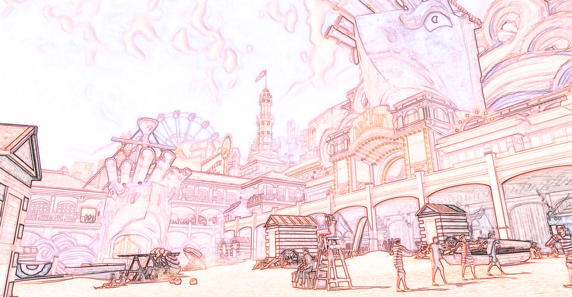 ...Hold on, there's another one above the arcade, as well. It's the same shape...a ship?
